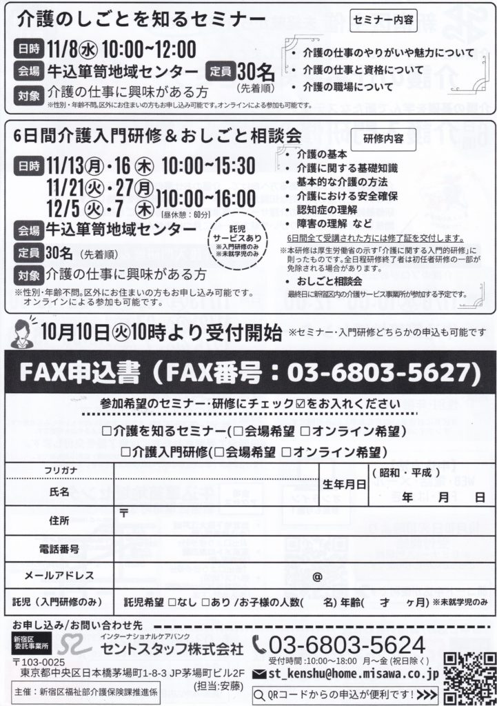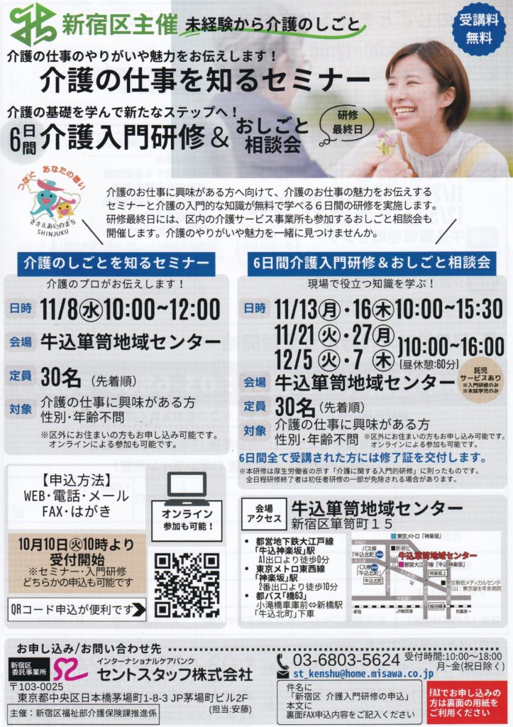 介護の仕事のやりがいや魅力をお伝えします!●介護の仕事を知るセミナー介護の基礎を学んで新たなステップへ!●介護入門研修&おしごと相談会