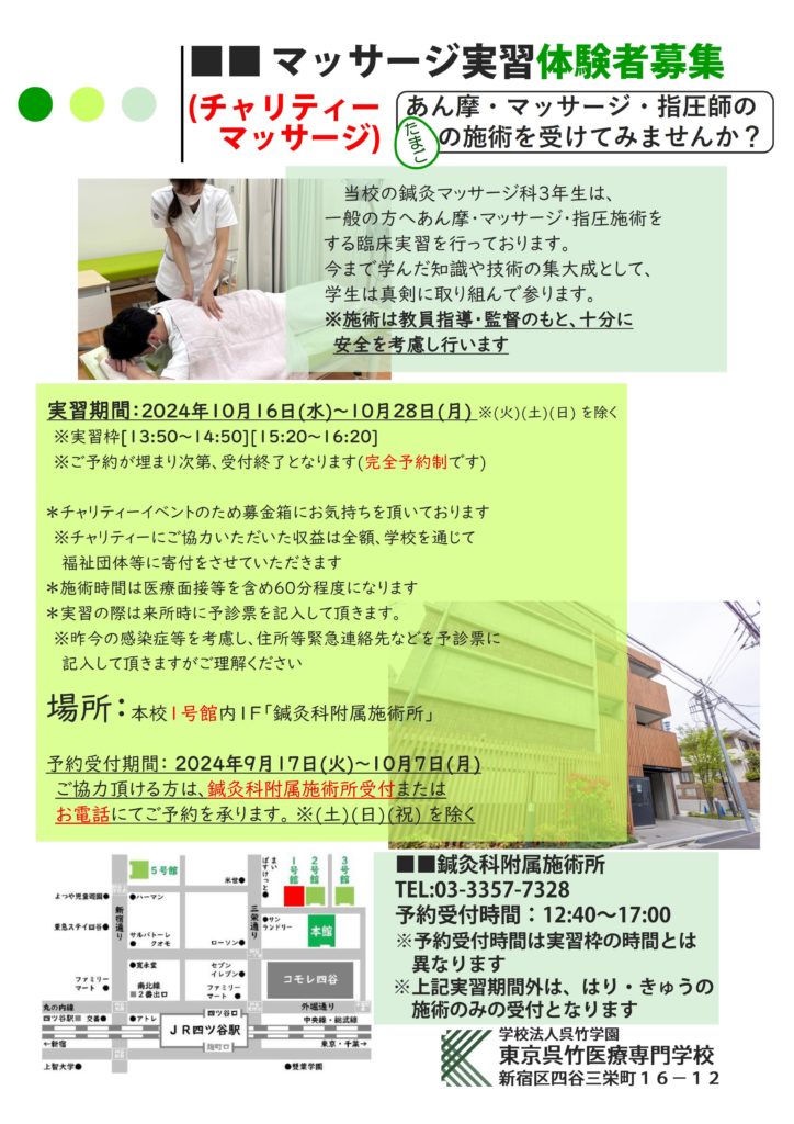 マッサージ実習体験者募集 呉竹学園
