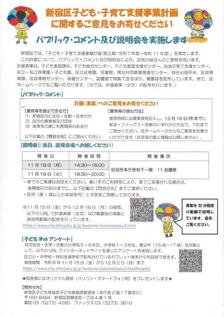 新宿区子ども・子育て支援事業計画に関するご意見をお寄せください