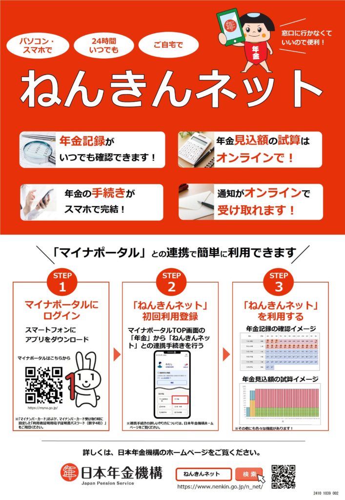 詳しくは、日本年金機構のホームページをご覧ください。https://www.nenkin.go.jp/n_net/