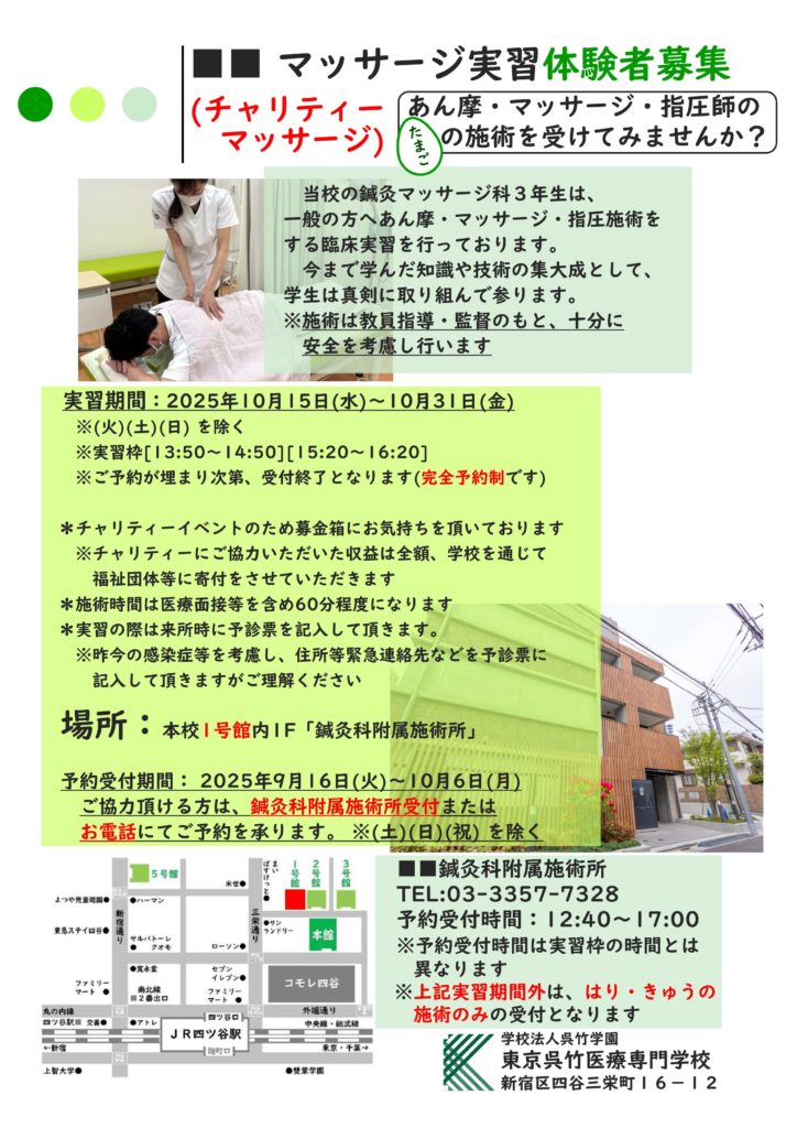 マッサージ実習体験者募集