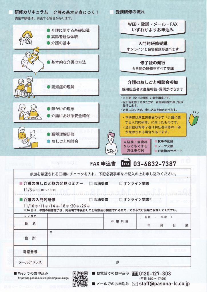 新宿区で働きたいおなたへ。介護職の魅力を「知り」、「学び」、「相談」できる3ステップイベント!