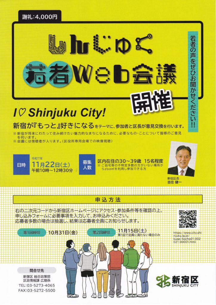 日時:11月22日(土)募集人数:区内在住の30~39歳 15名程度