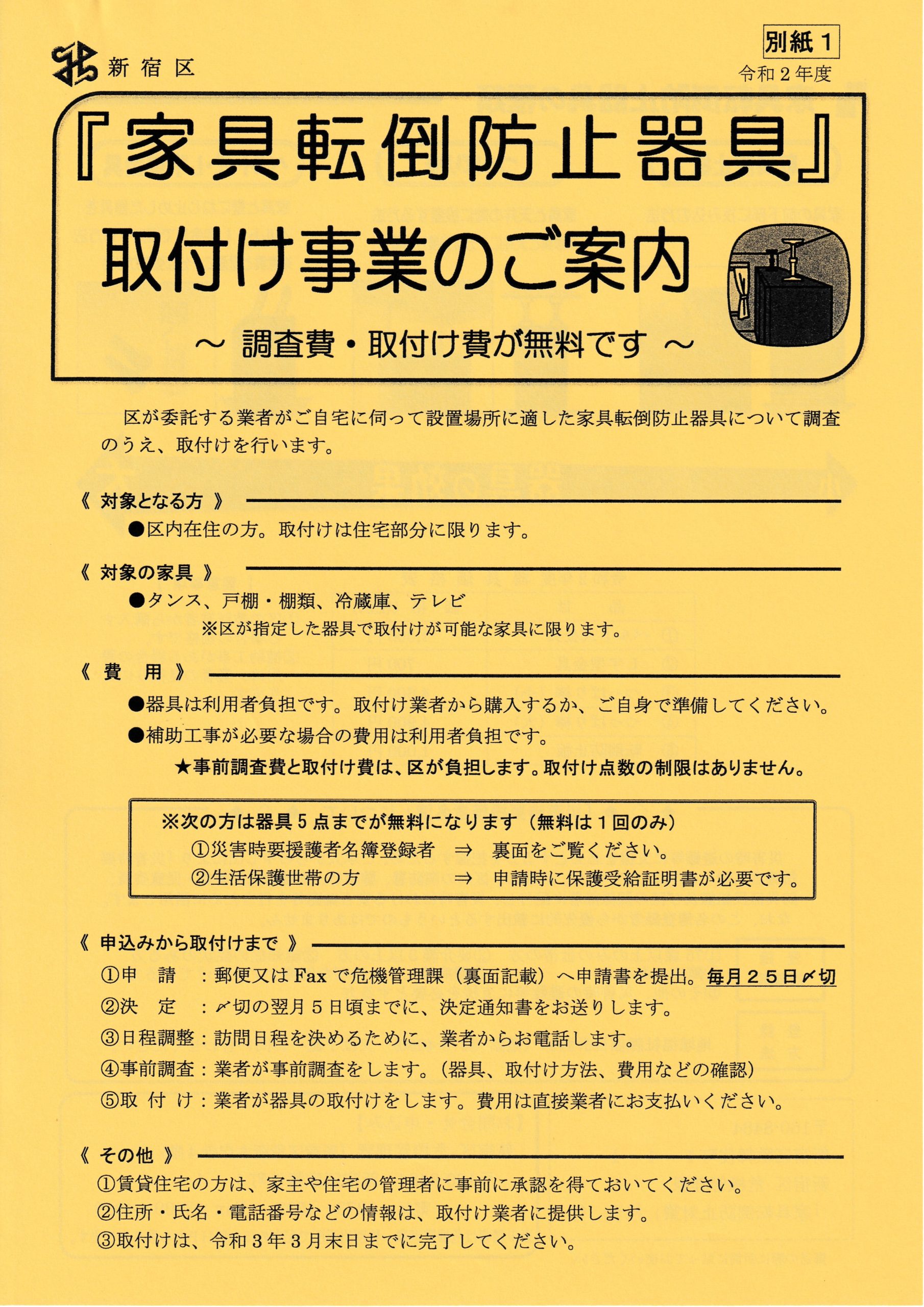 別紙1 家具転倒防止器具取付け事業のご案内(チラシ)