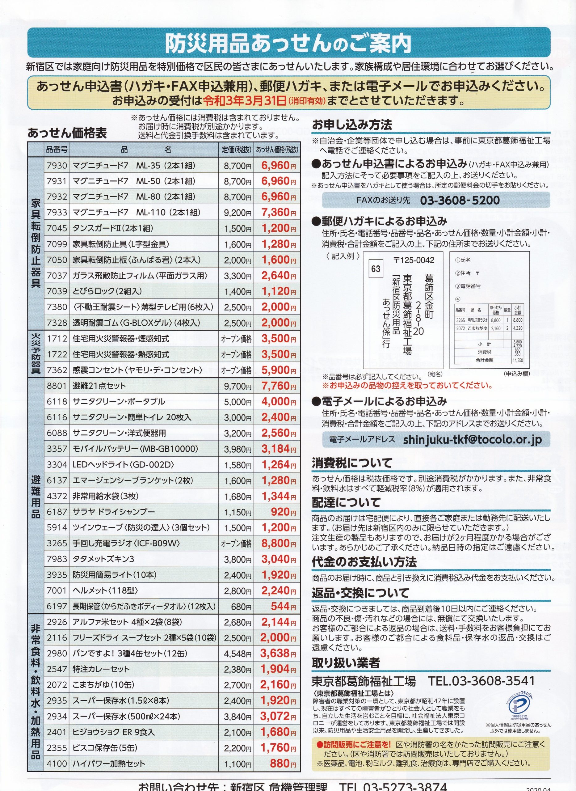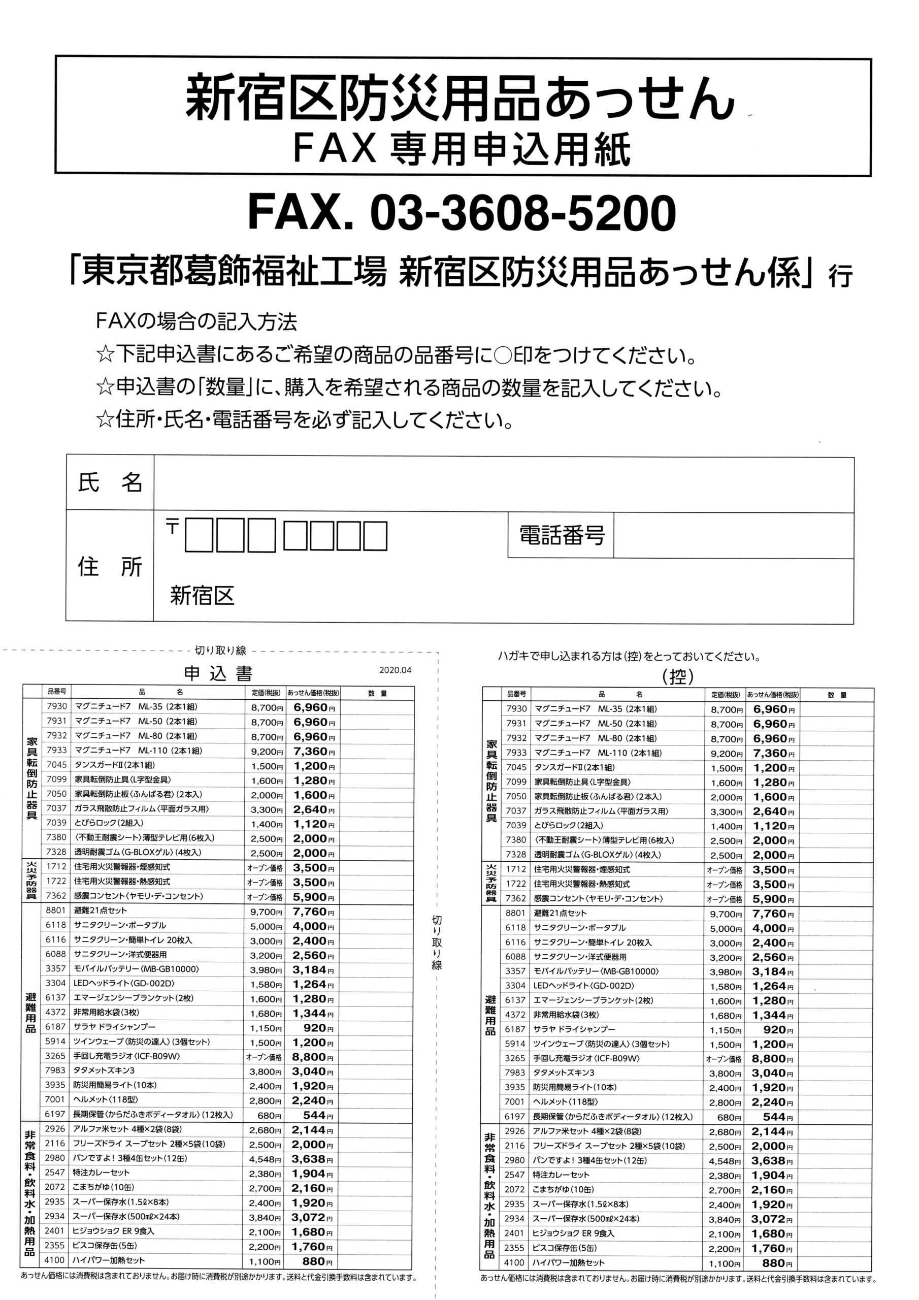 別紙2 防災用品あっせんのご案内(パンフレット)