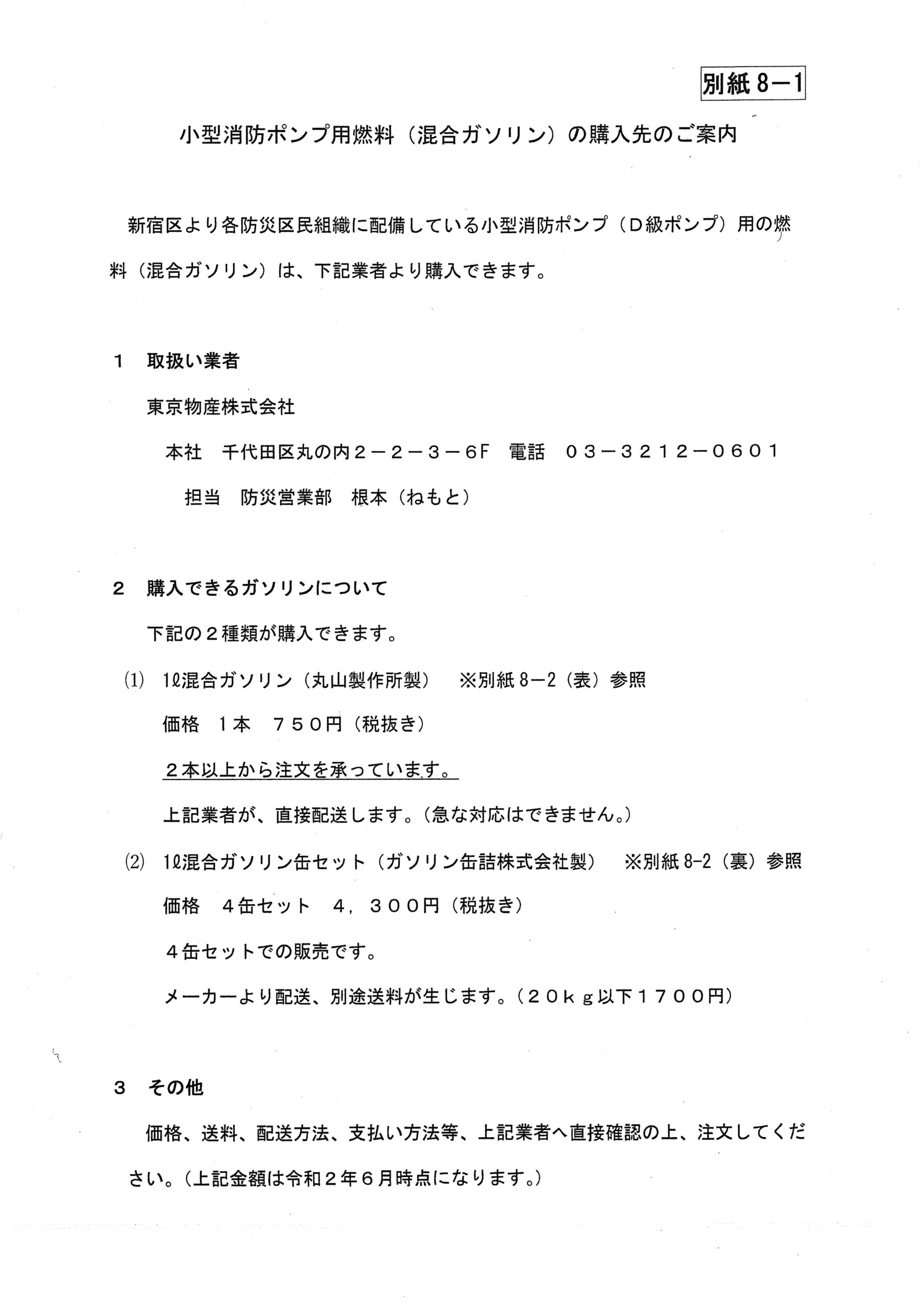 別紙8-1 小型消防ポンプ用燃料の購入先のご案内