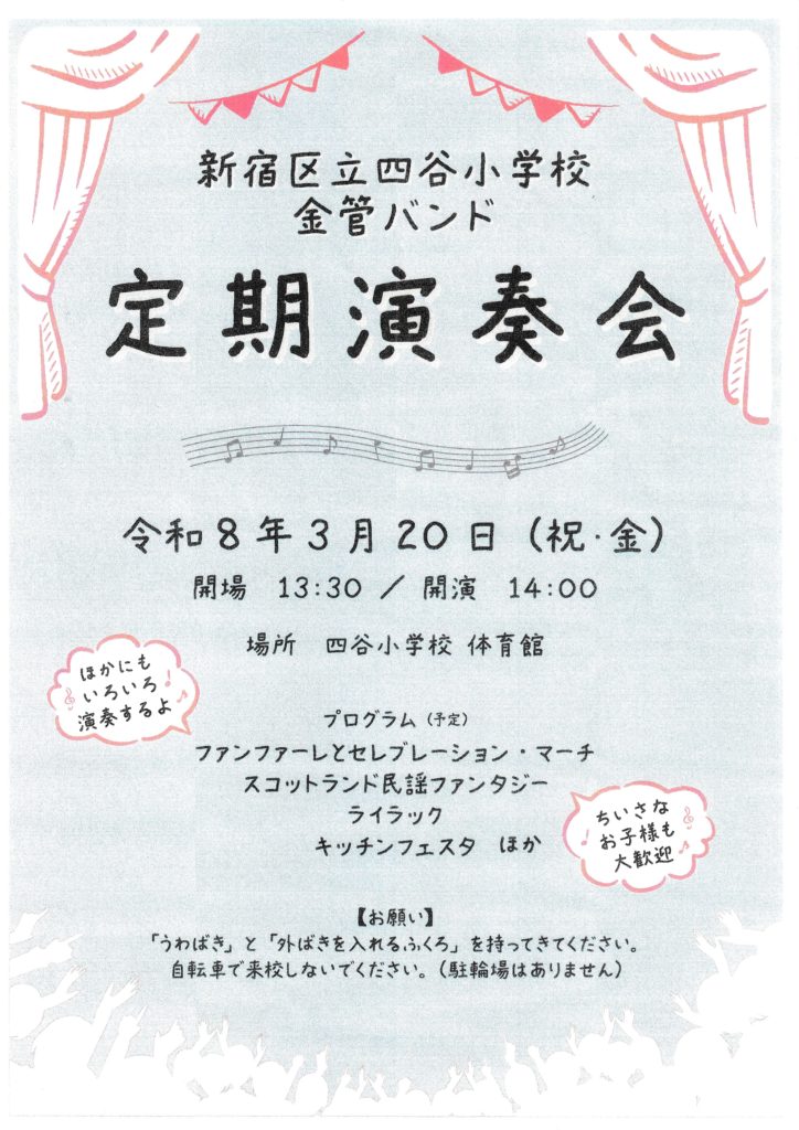令和8年3月20日(祝・金) 開場13:30/開演14:00場所 四谷小学校 体育館