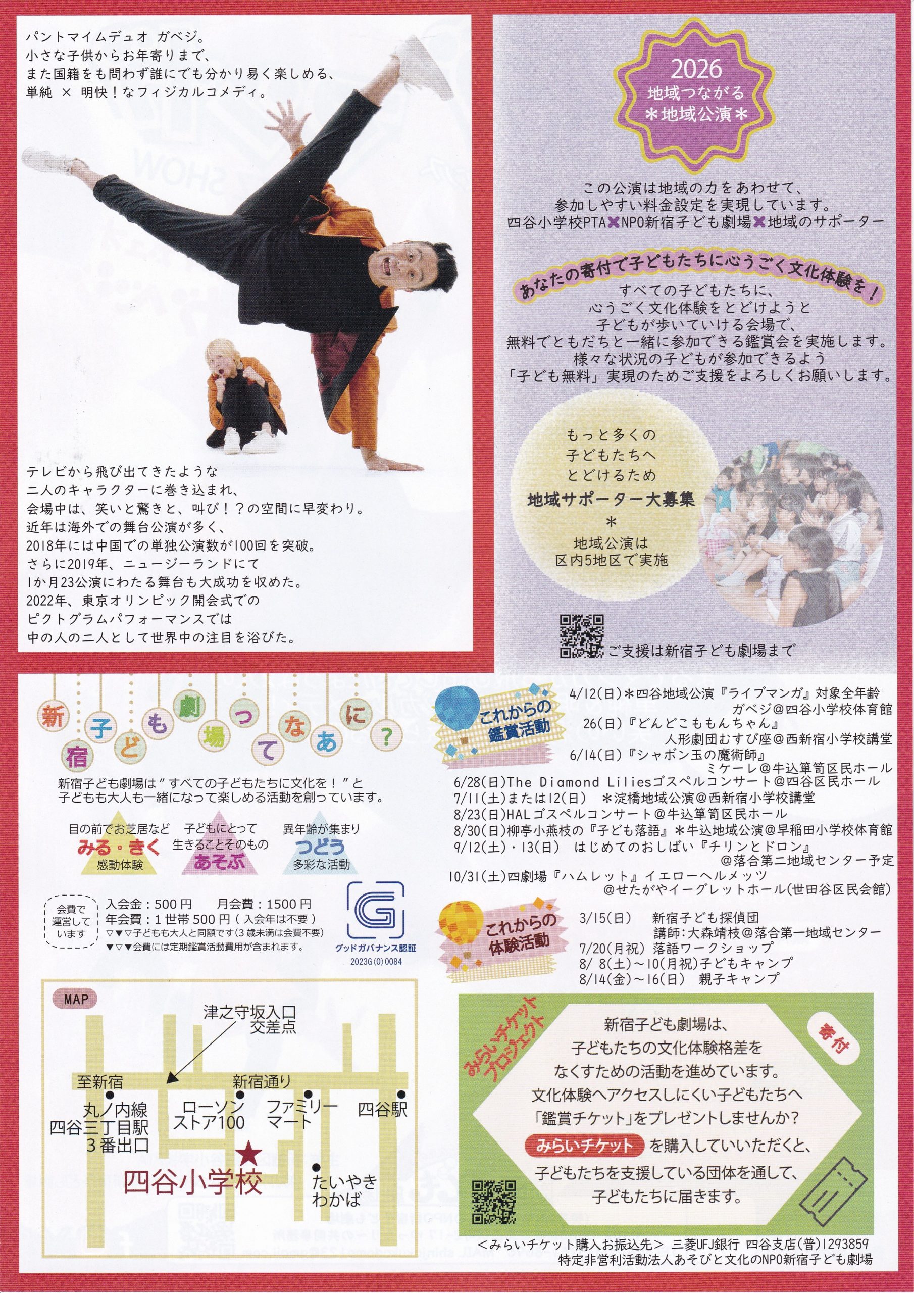 参加費 一般大人 1,000円四谷小学校PTA・新宿子ども劇場会員 無料